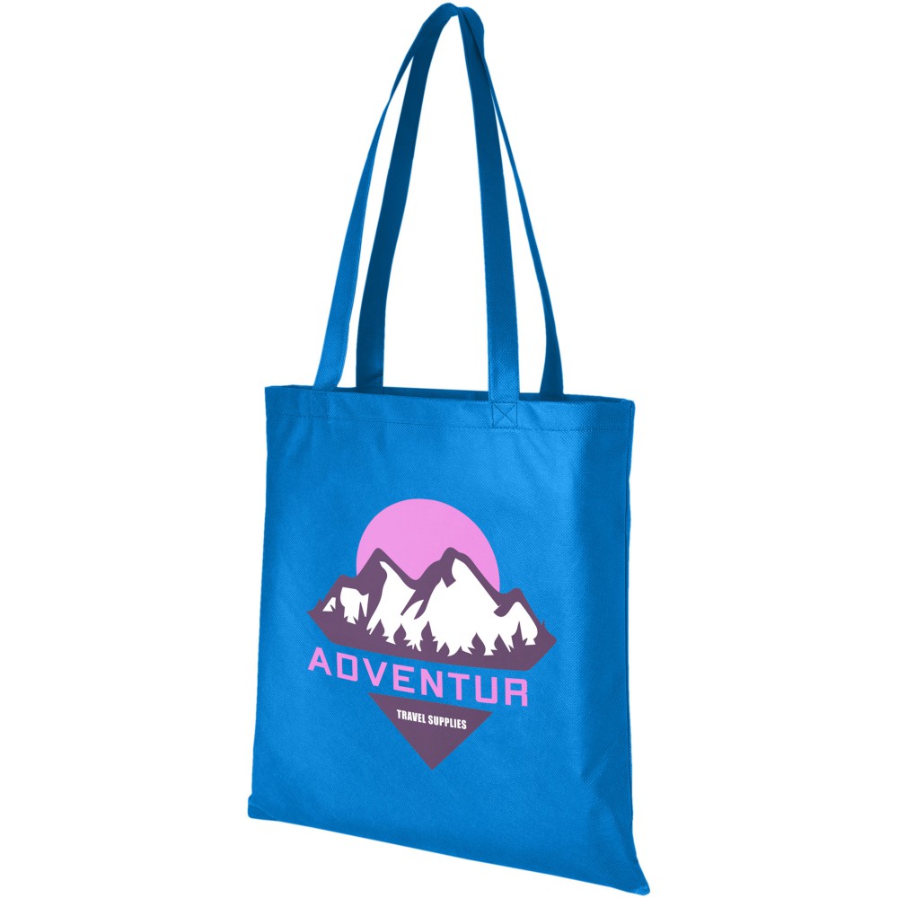 A Zeus nagyméretű, nemszőtt táska tökéletes választás konferenciákra, kiállításokra. Fülek magassága 29,2 cm. Újrahasznosítható anyag. 80 g/m2 nemszőtt polipropilén.