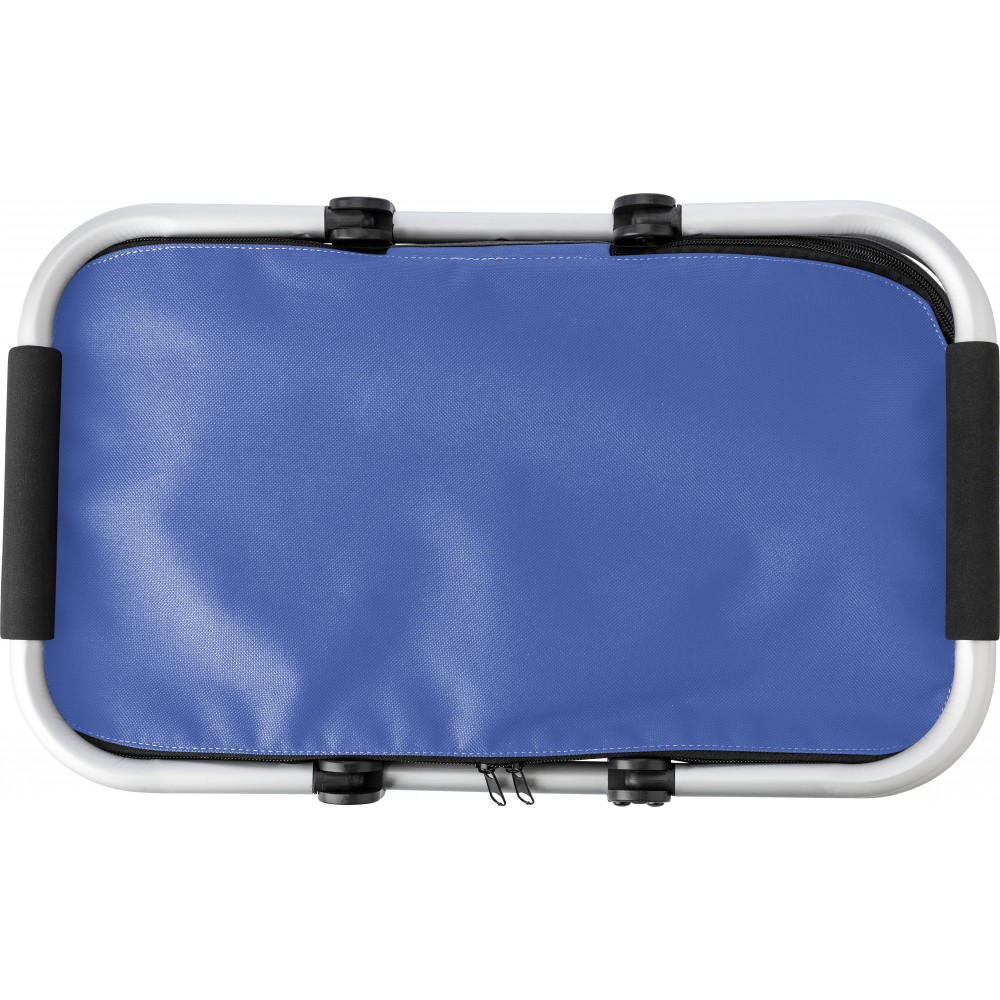 Bevásárlókosár. Összecsukható bevásárlókosár cipzáros záródással, alumínium vázzal, EVA fogóval, Oxford anyagból.