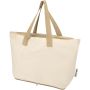 A könnyű és praktikus Sierra összehajtható bevásárlótáska 100% újrahasznosított pamutból készült, GRS tanúsítvánnyal rendelkezik. A 140 g/m2-es anyagsűrűség tökéletes egyensúlyt teremt a rugalmasság és a tartósság között. A táska az alján található cipzáras zsebbe saját magába visszahajtható, így kompakt méretű és könnyen hordozható. Ideális bevásárláshoz, ügyintézéshez vagy utazáshoz. A dupla fülek extra tartást és kényelmet biztosítanak a nehezebb csomagok szállításakor is, teherbírása 10 kg. Űrtartalma: 7 liter.