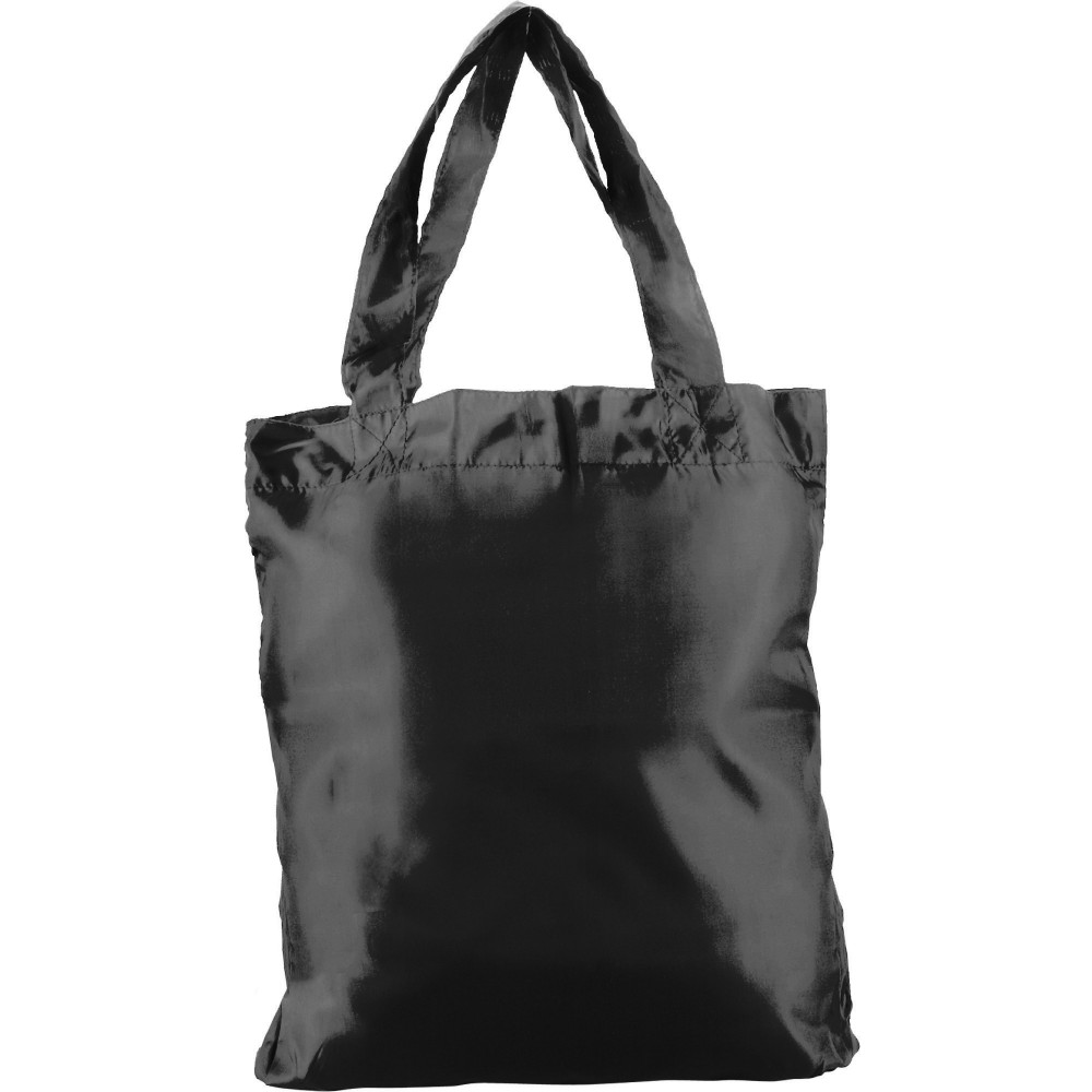 Összehajtható bevásárlótáska övre akasztható tokban. 190T poliészter. Nyitott méret (fül nélkül): 42 x 41 cm.