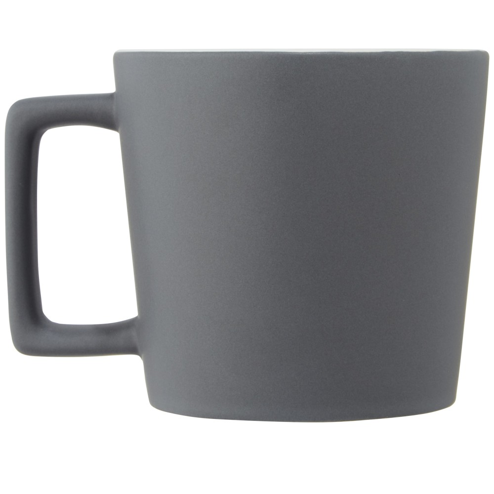 Kerámia bögre modern dizájnnal és matt felülettel. Nem szivárgásmentes. Szénsavas italokkal is használható. Mosogatógépben mosható és mikrohullámú sütőben történő melegítésre alkalmas. Űrtartalom: 370 ml. Újrahasznosított karton díszdobozban.
