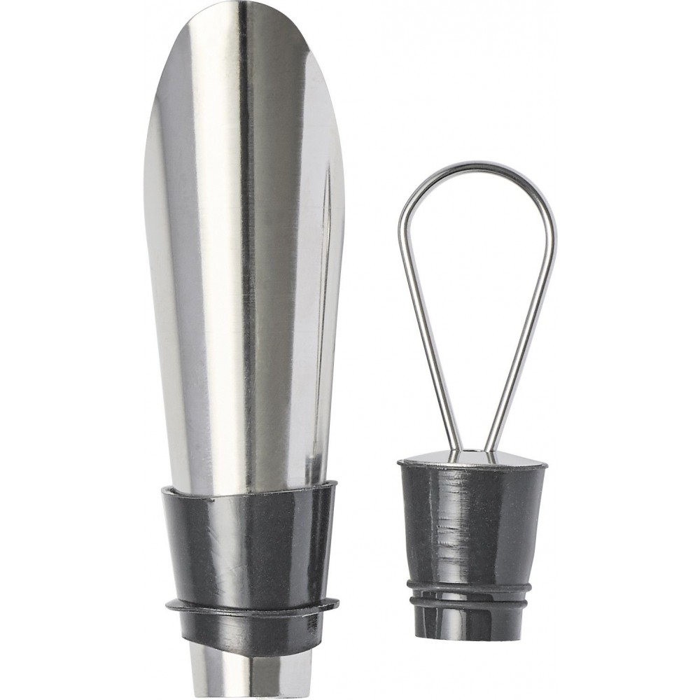 Egy pincérbicska és egy üvegdugó kiöntővel. Rozsdamentes acél és EVA BPA-mentes műanyag.