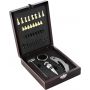 Boroskészlet sakk-készlettel. Üvegdugó, cseppfogó, borhőmérő, pincérbicska.