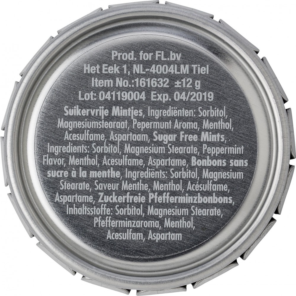 Pattintós fém cukorkásdoboz. 12 g cukormentes mentolos cukorkával.