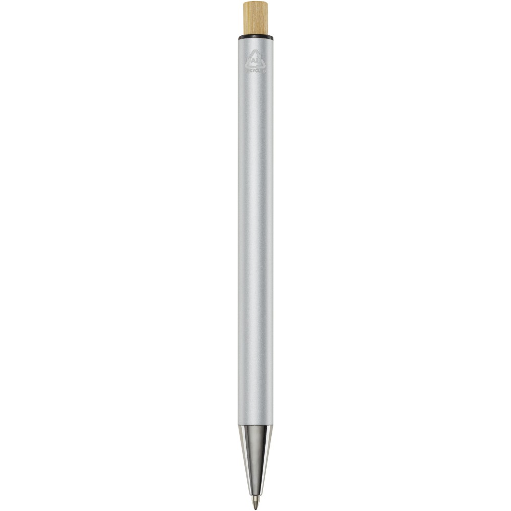 A Cyrus golyóstollújrahasznosított alumíniumból készül, ami kevesebb energiát igényel, mint az alumínium nyersanyagból történő előállítása. Emellett csökkenti a hulladéklerakókba kerülő hulladék mennyiségét és hozzájárul a természeti erőforrások megőrzéséhez, amelynek célja az üvegházhatású gázok kibocsátásának csökkentése. A nyomógomb bambuszból készült. Tollbetét színe: kék. Íráshossz: 800 méter. Tollhegy mérete: 1,00 mm.