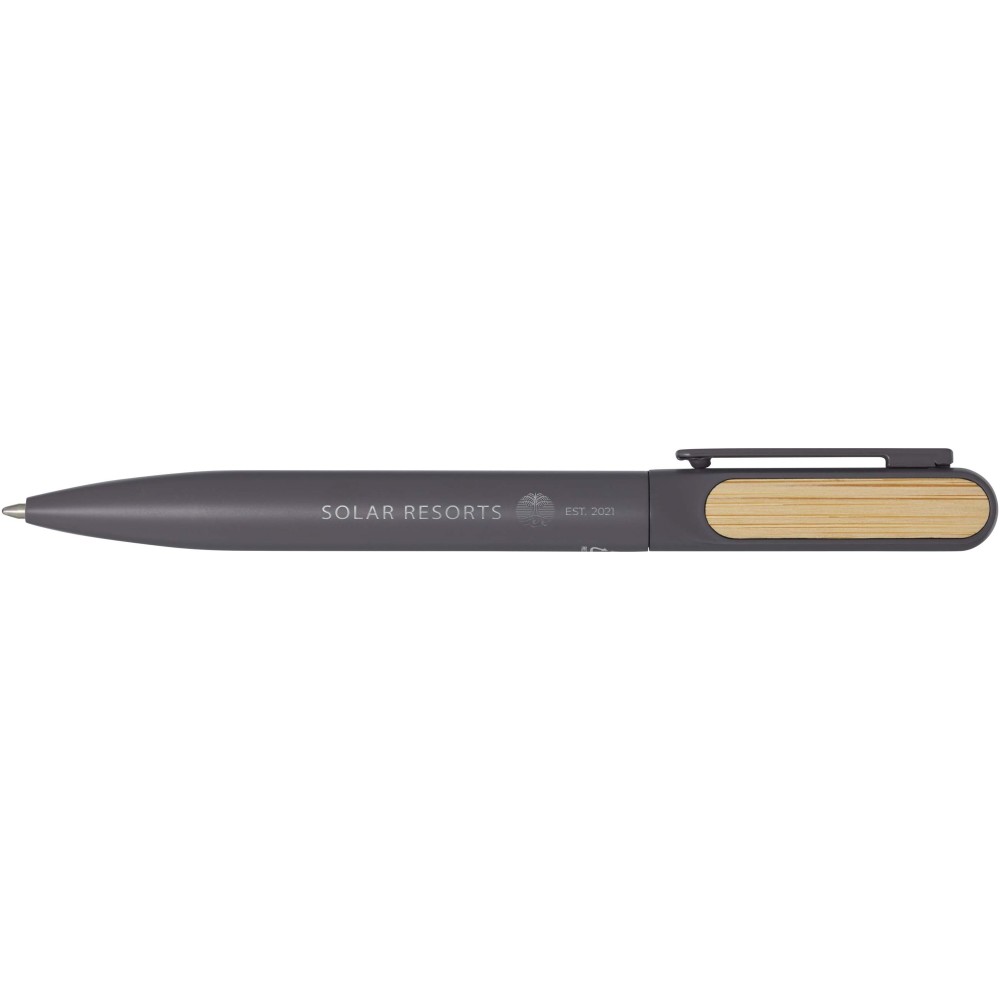 A Blanca golyóstoll felső teste újrahasznosított műanyagból készült, színes bevonattal, és mindkét oldalán bambusz kiegészítőkkel van ellátva. Az alsó test újrahasznosított alumíniumból készült, színes bevonattal. Fekete tollbetéttel. Írási hossz: 400 méter. Tollhegy mérete: 1,0 mm.