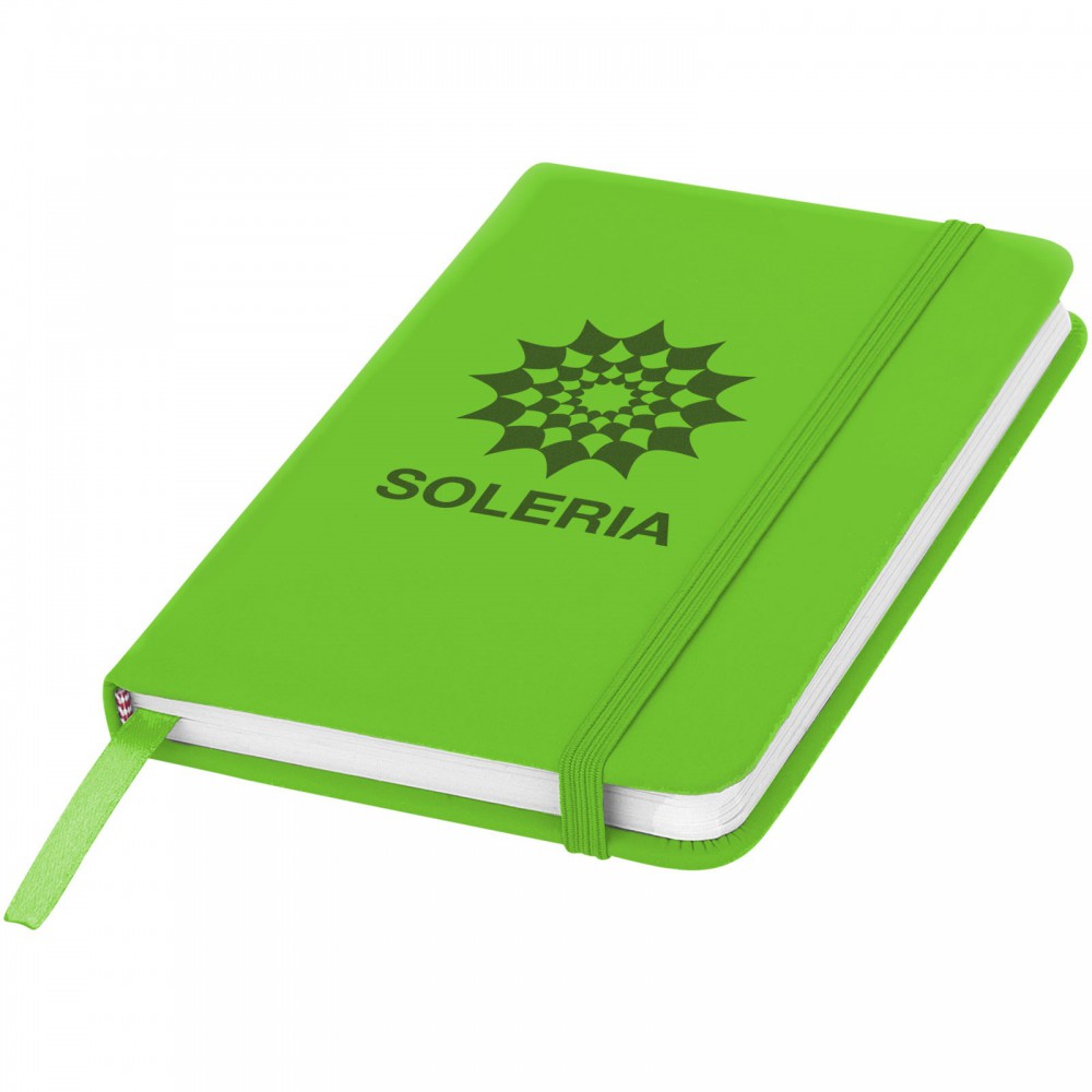 Spectrum A6 jegyzetfüzet színes fedéllel, jelölőszalaggal és gumipánttal, 96 vonalas lappal (60g/m2). PVC fedett karton.