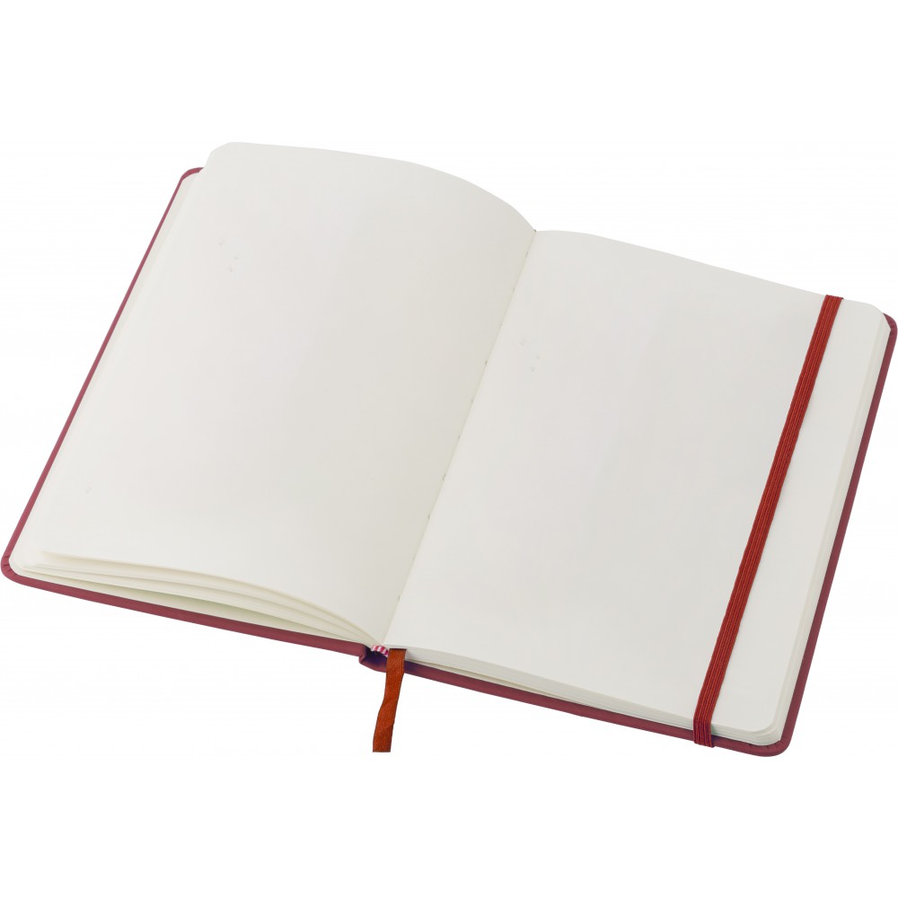 A5-ös jegyzetfüzet 96 üres lappal, gumis záródással és könyvjelzővel. PU.