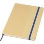 Kemény fedeles A5 jegyzetfüzet újrahasznosított kartonból, 80 soros, 70 g/m2 papírlappal. A jegyzetfüzet gumis záródással, szalaggal és lekerekített sarkokkal rendelkezik.
