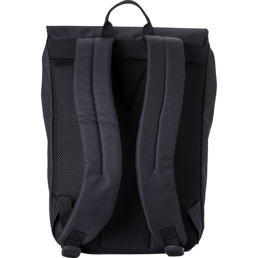 Kéttónusú poliészter (600D) hátizsák PU címkével a ráhajtón. Egy cipzáras zseb az elülső oldalon. Egy nagy rekesz a felső oldalon fém záródással. Laptoprekesz, amely egy 15 colos laptop számára alkalmas. A hátizsák megerősített hátlappal és állítható vállpántokkal rendelkezik.