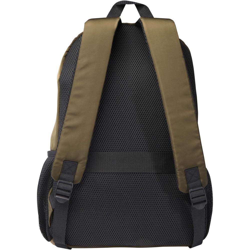 A Trend Plus hátizsák GRS tanúsítvánnyal rendelkező újrahasznosított, puha és gyűrődésálló anyagból készült, minőségi RPET béléssel. A hátizsák 15?-os laptoprekesszel, rendszerező rekesszel, cipzáras elülső zsebekkel, oldalsó rugalmas hálós zsebekkel, valamint légáteresztő hátpárnázattal és bőröndpánttal rendelkezik. Az állítható vállpántok maximális kényelmet biztosítanak. Űrtartalma: 20 liter. Teherbírás: akár 10 kg. PVC-mentes.