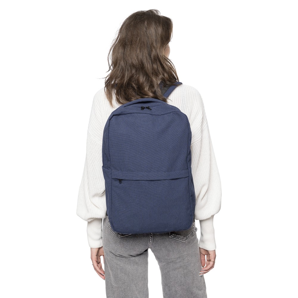Hátizsák 330 g/m2 újahasznosított policotton anyagból, 210D poliészter béléssel. Egy nagy cipzáras rekesszel, párnázott 15"-es laptoptartó résszel, két belső és két külső rekesszel, oldalzsebbel és egy kicsi, cipzáras elsőzsebbel. Párnázott, állítható vállpánttal és hordozófüllel. Űrtartalom: 14 liter, teherbíró képesség: 13 kg. Címkét tartalmaz.