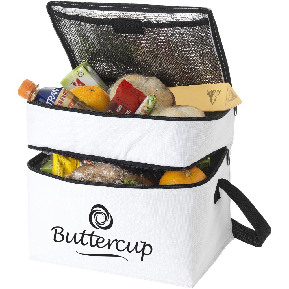 Az Oslo hűtőtáskával bármikor és bárhol hűtött italokat és harapnivalókat biztosíthat. A hűtőtáska két különálló cipzáras rekesszel rendelkezik. A felső része tökéletes az apró falatok tárolására, az alsó része pedig a nagyobb élelmiszerek tárolására. A vállpánt állítható, így a táskát mindenki könnyen hordozhatja. A hűtőtáska 600D poliészterből készült, amely egy nagy teherbírású és tartós szövet.