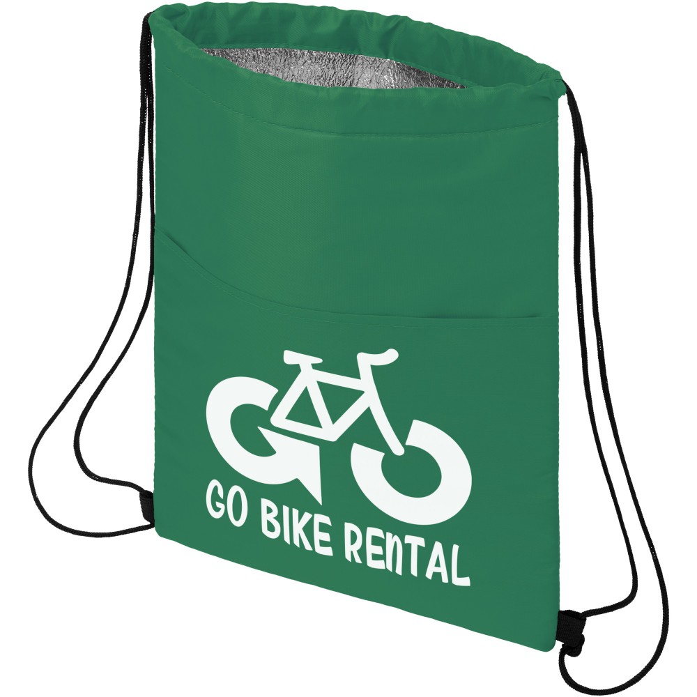 Hátizsák és hűtőtáska fekete húzózsinórral 12 doboz számára. Teherbírás 5 kg-ig. 210D poliészter.