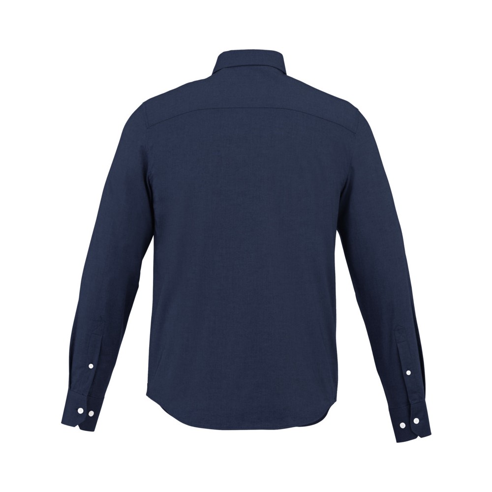 Normál szabásvonal. Elevate logóval gravírozott, fehér gombok. Alulról a második gomblyuk narancssárga öltésekkel dekorálva. Két gombos, állítható kézelő gombolás. Tónusos logónyomat hátul. Szatén szegély a nyakvonalban. Legombolható gallér (férfi). 100% pamut Oxford anyag.