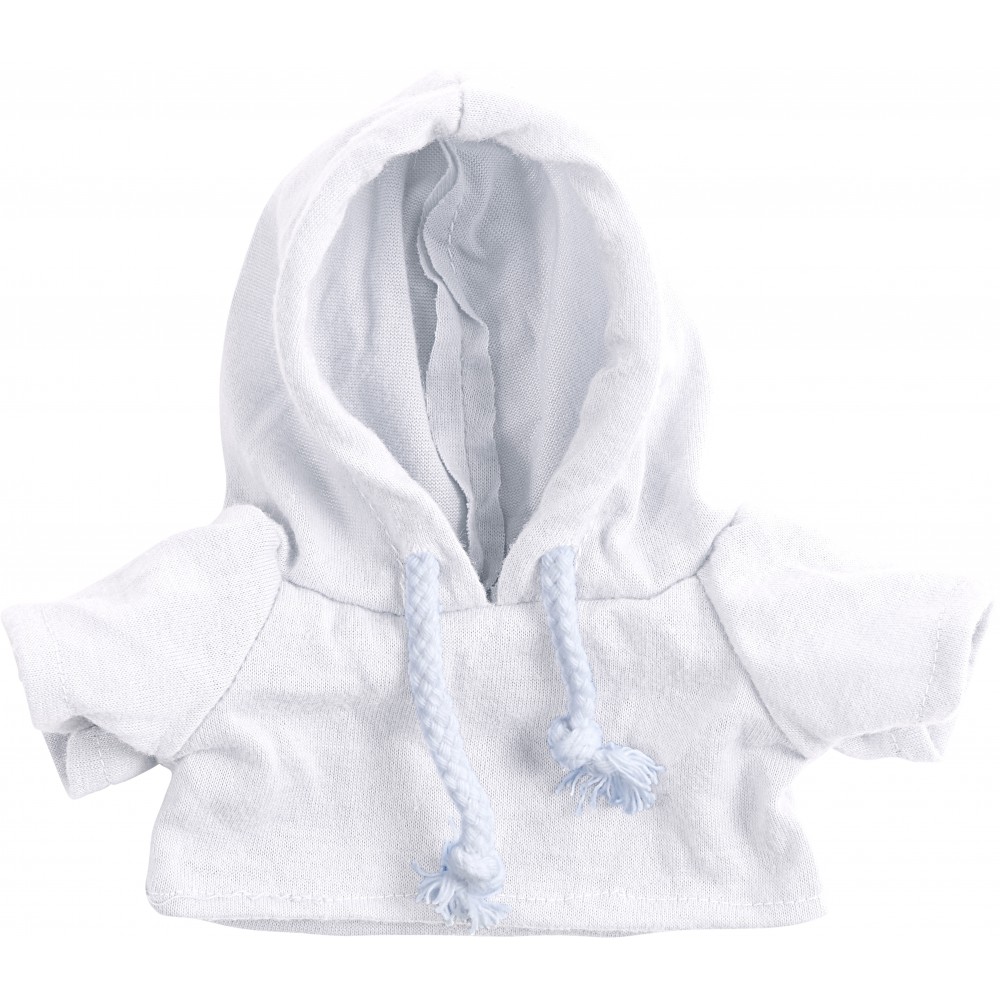 Plüssmackó kapucnis pólóban, fehér