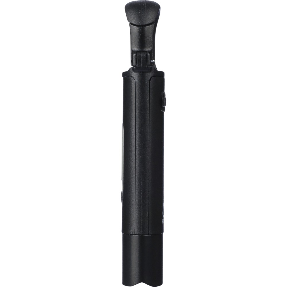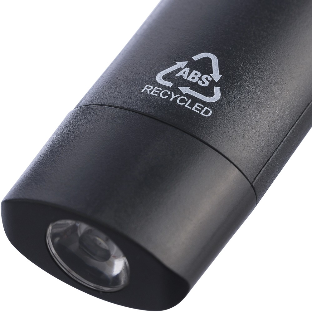 Mini elemlámpa újrahasznosított ABS anyagból, beépített 20 mAh-s, usb-n keresztül tölthető akkumulátorral és karabinerrel. Első COB lámpával és oldalsó COB fényszóróval, mely három világítási móddal rendelkezik. USB-C töltőkábellel, újrahasznosított ABS anyagot jelző logóval. Csomagolása barna papírdoboz.