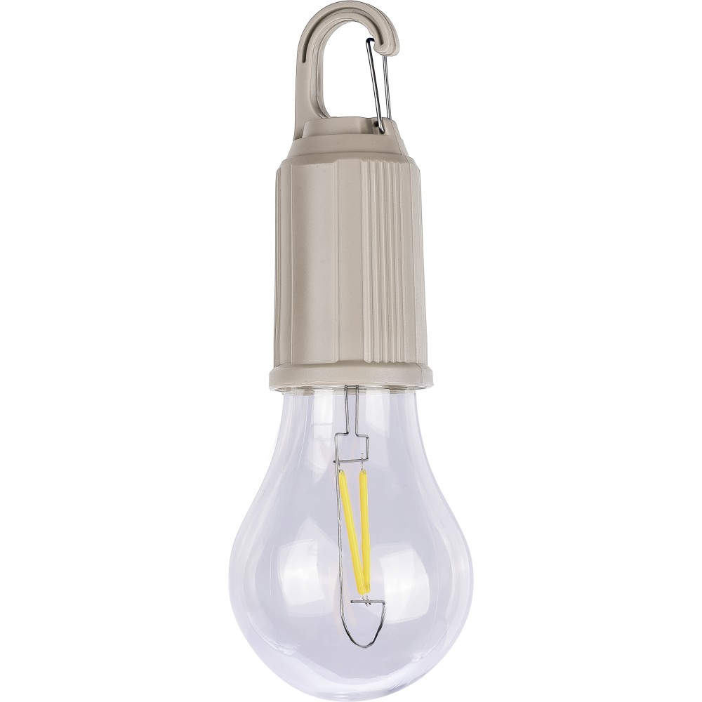 ABS anyagból készült izzó formájú lámpa (60 lumen) 400 mAh kapacitású, újratölthető akkumulátorral. USB-C csatlakozással tölthető. Fém klippel rendelkezik és három világítási móddal. IPX3 védettségi szint.