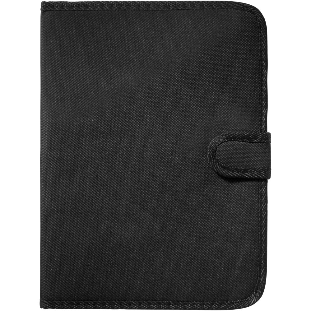 Tépőzáras mappa, tolltartó hurok, irattartó zseb és 20 oldal vonalas jegyzetlap. A tollat és a kiegészítőket nem tartalmazza. 600D poliészter.