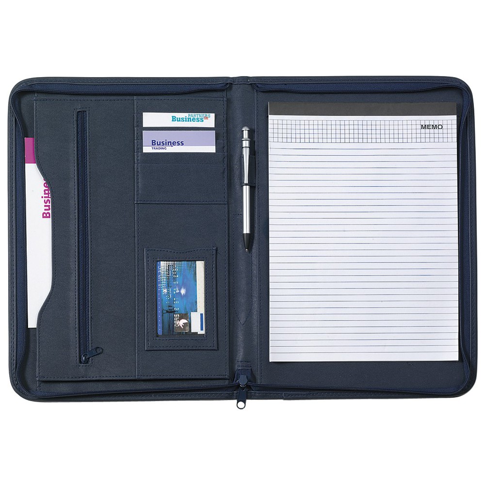 A4-es cipzáras PU mappa. Jegyzettömböt és tollat nem tartalmaz.