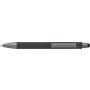 Golyóstoll gumis bevonattal, érintővel, kék tollbetéttel. ABS, PP műanyag, szilikon, vas.