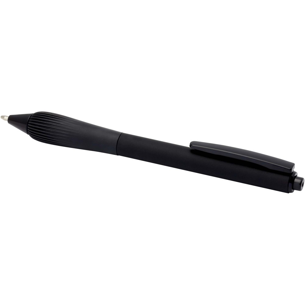 Újrahasznosított műanyag golyóstoll gumírozott tolltesttel és TPR anyagból készült fogórésszel. Kék tollbetéttel. Írási hossz: 1000 méter. Hegyméret: 1,0 mm.