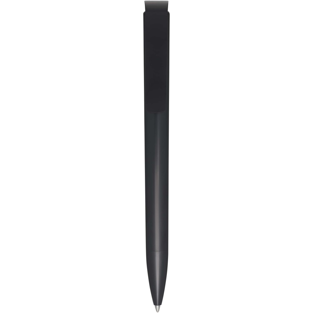 Golyóstoll, amelynek teste és klipsze újrahasznosított műanyagból készült, a hegy pedig rozsdamentes acélból. Fekete tollbetéttel. Íráshossz: 3000 méter. Hegyméret: 1,00 mm. Németországban készült.