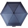 Összecsukható, automata esernyő (21 inch), hat panellel és acél vázzal. Az esernyő tépőzáras záródásán RPET címke található, műanyag karabineres fogantyúval, tokkal. Szélálló. Anyaga: RPET 190T.