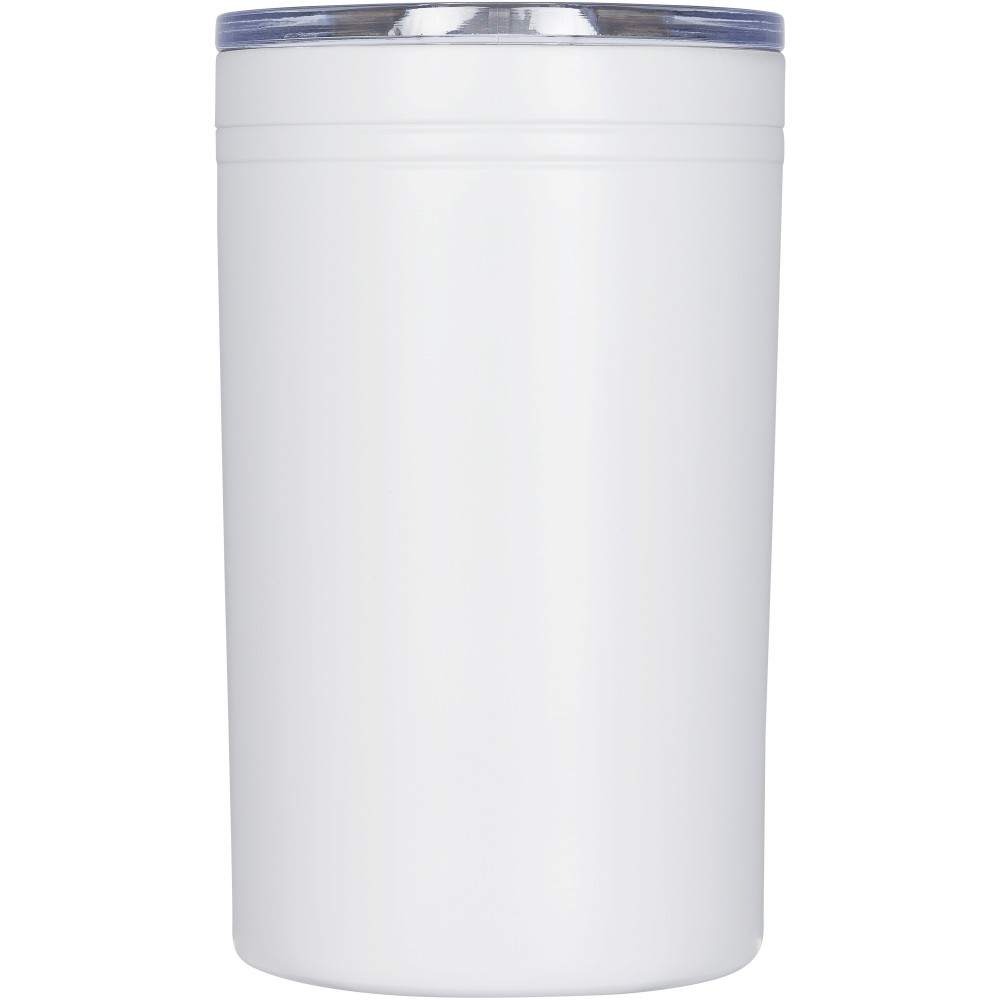 Duplafalas, vákuumos kialakítás. Nem szivárgásmentes. Szénsavas italokkal nem használható. Mosogatógépben nem mosható és mikrohullámú sütőben történő melegítésre nem alkalmas. Átlátszó, rápattintható kupak, elcsúsztatható záródással. Űrtartalom: 330 ml.