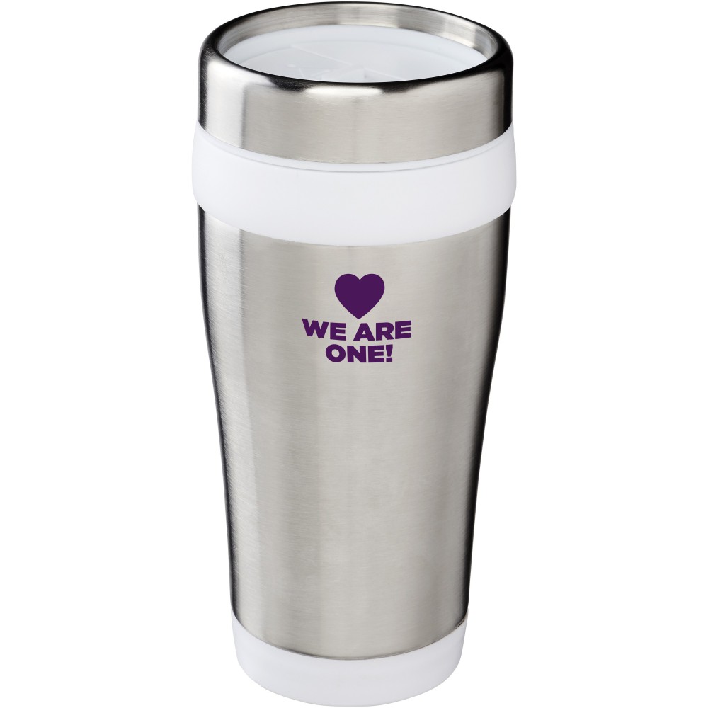 Duplafalú bögre rácsavarható tetővel és elcsúsztatható nyílással. A rozsdamentes acél és a műanyag kombinációja rendkívül erőssé, korrózióállóvá és könnyen tisztíthatóvá teszi a poharat. Nem szivárgásmentes. Szénsavas italokkal is használható. Mosogatógépben nem mosható és mikrohullámú sütőben történő melegítésre nem alkalmas. Űrtartalom: 470 ml.