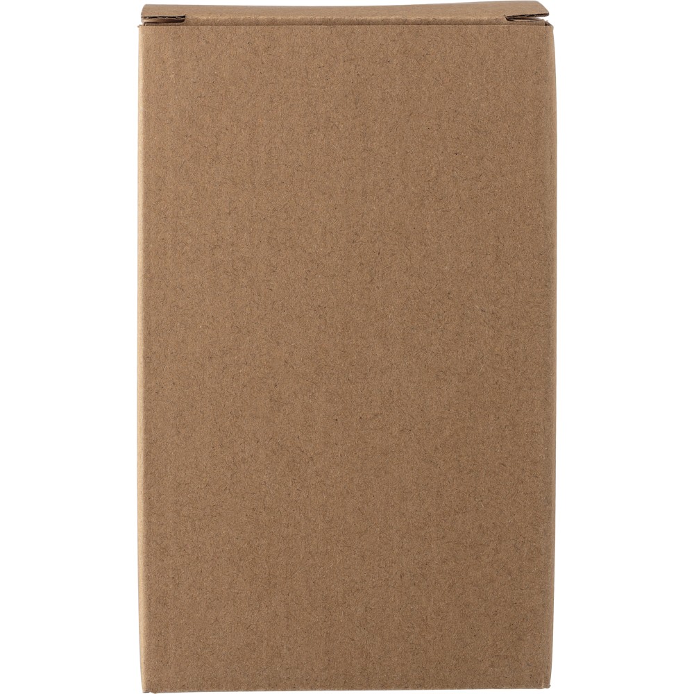 Rozsdamentes acélból és PP-ből készült utazópohár (350 ml). A PP fedél szilikon zárógyűrűvel rendelkezik, tetején lehajtható záróelemmel. Egyedileg csomagolva barna kartondobozban érkezik.