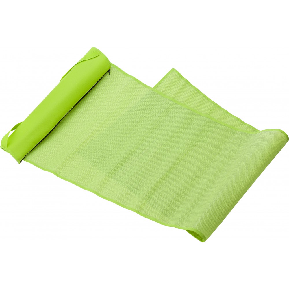 Összehajtható napozó színben illeszkedő hordozópánttal. Cipzárral összezárt mérete: 2,5 x 71 cm. PP nemszőtt anyag.