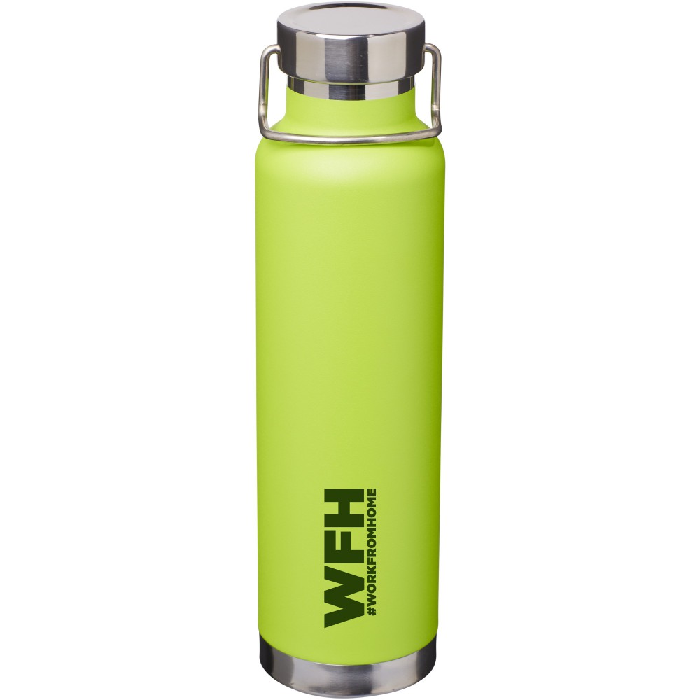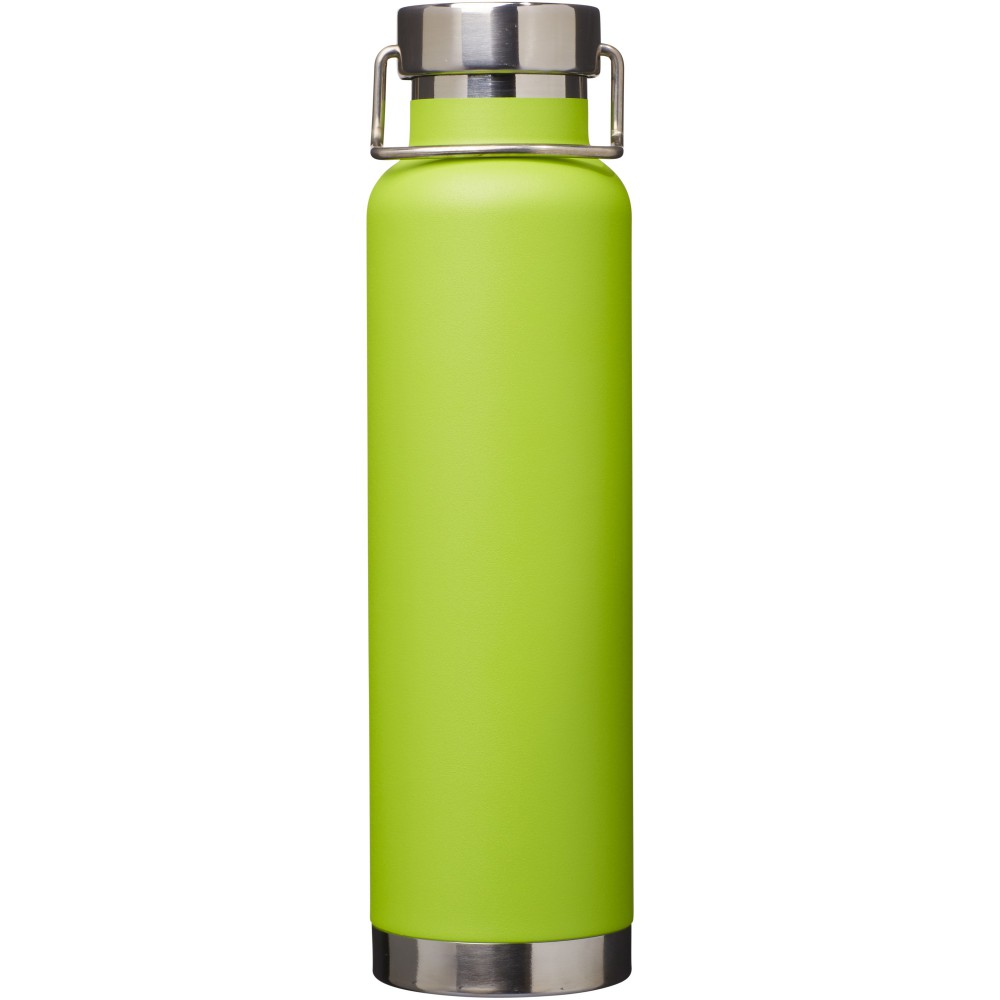 Thor duplafalú vákumos palack. Belső fala réz, ennek köszönhetően 48 órás hideg- és 12 órás melegtartási képességgel rendelkezik. Ez a kialakítás megakadályozza a kondenzációt a palack külső falán. A termoszhoz csavaros, rozsdamentes acél kupak tartozik. Széles kiöntő nyílással rendelkezik, amely akár jégkockák behelyezésére is alkalmas. Szivárgásmentes. Szénsavas italokkal nem használható. Mosogatógépben nem mosható és mikrohullámú sütőben történő melegítésre nem alkalmas. Űrtartalom: 650 ml. Csomagolása Avenue díszdoboz. Rozsdamentes acél.