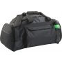 600D poliészter utazótáska egy első zsebbel, egy palacktartó és egy headset elhelyezésére való oldalzsebbel és egy nagy cipzáros rekesszel.