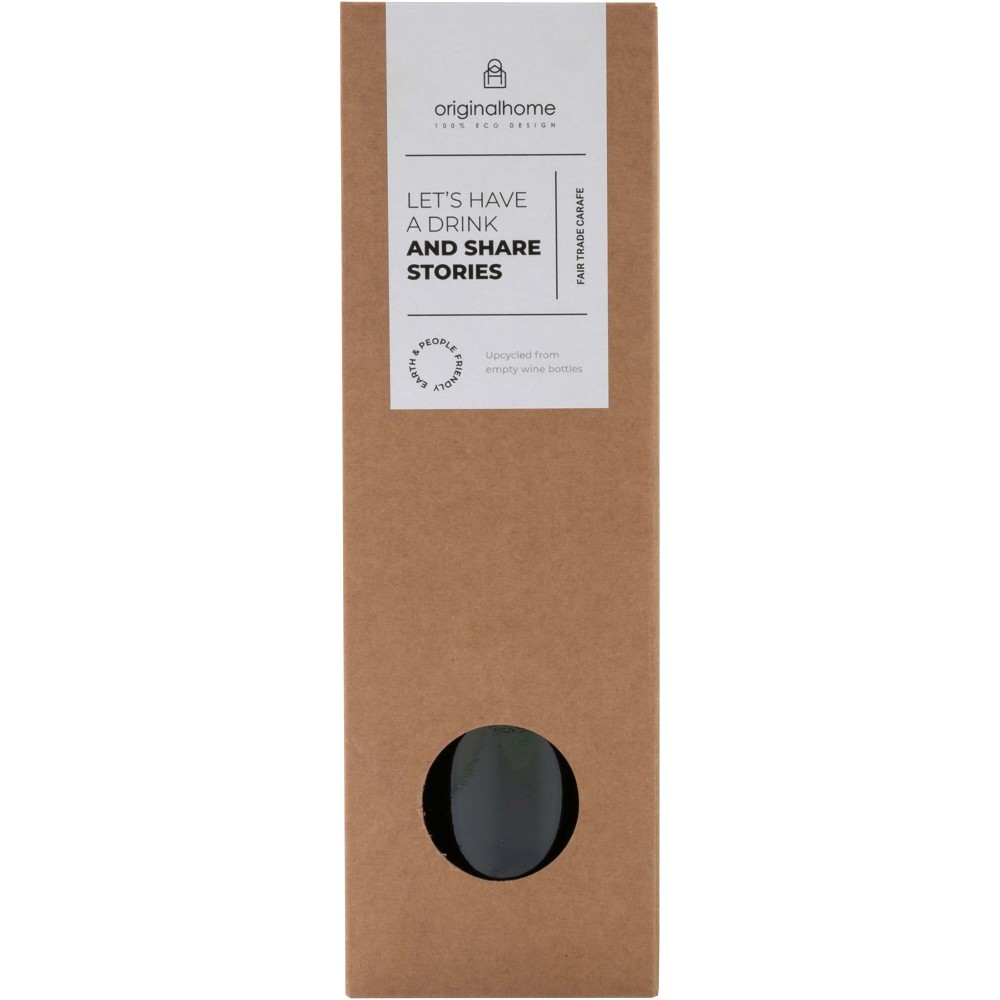 Kézzel készített, 750 ml-es vizeskancsó, amely Zanzibárból, Tanzániából származó újrahasznosított borospalackokból készült. A borospalackokat szállodákból, éttermekből és bárokból gyűjtik, majd válogatják, tisztítják és különböző formákra és méretekre vágják. Ajándékdobozban szállítjuk.