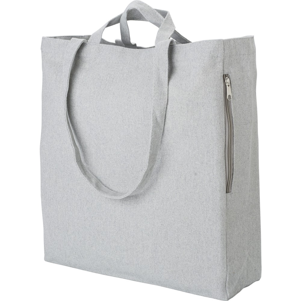 Újrahasznosított pamut bevásárlótáska rövid és hosszú füllel. Oldalt cipzáras zseb. 350g/m2