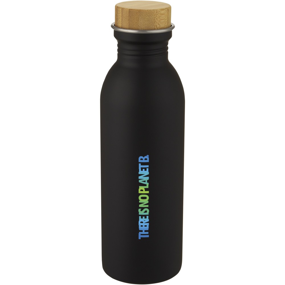 Egyfalú, 18/8-as rozsdamentes acél sportpalack bambusz tetővel. BPA-mentes, a német élelmiszerbiztonsági törvény (LFGB) szerint tesztelt és jóváhagyott. Ftaláttartalomra tesztelve és jóváhagyva a REACH előírásai szerint. A felhasznált bambusz fenntartható, környezeti és társadalmilag felelős forrásból származik. Szivárgásmentes. Szénsavas italokkal nem használható. Mosogatógépben nem mosható és mikrohullámú sütőben történő melegítésre nem alkalmas. Űrtartalom: 650 ml. Újrahasznosított karton díszdobozban.