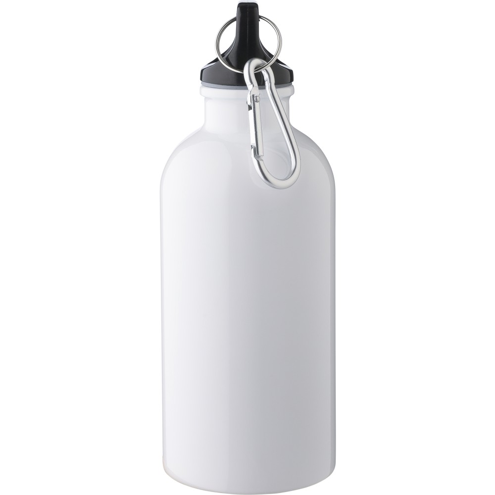 Újrahasznosított rozsdamentes acélból készült 400 ml-es szimplafalú kulacs PP kupakkal és alumínium karabinerrel. Az újrahasznosított anyagra utaló logó a palackra van gravírozva. Mosogatógépben nem tisztítható.