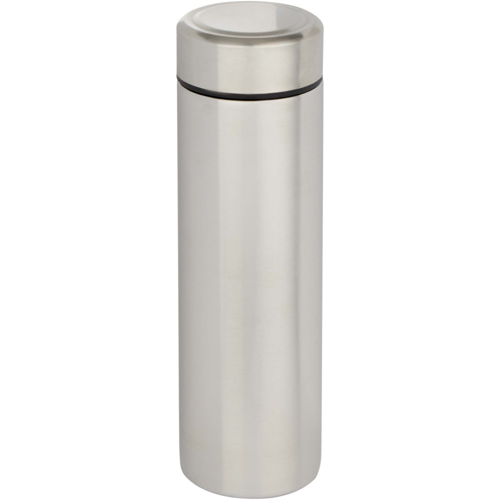 Duplafalú, vákuumszigetelt rozsdamentes acélból készült termosz, amely hosszú ideig tartja az italokat a kívánt hőmérsékleten. A kényelmesebb használat érdekében egy kivehető teaszűrőt tartalmaz. A 450 ml-es űrtartalom és a szivárgásmentes kialakítás révén ideális választás a mindennapi használatra vagy utazásokhoz.